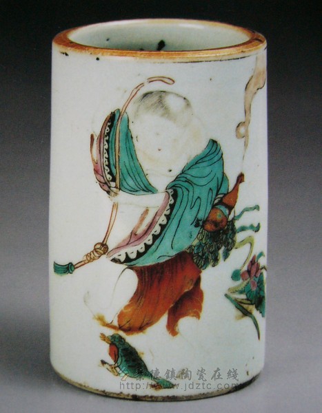 | 清·同治·彩绘人物笔筒·大清同治年制 红款 | |||||