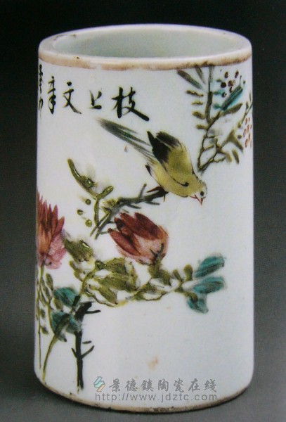 | 清·浅降花鸟笔筒·同治年制 红款 永兴作 | |||||