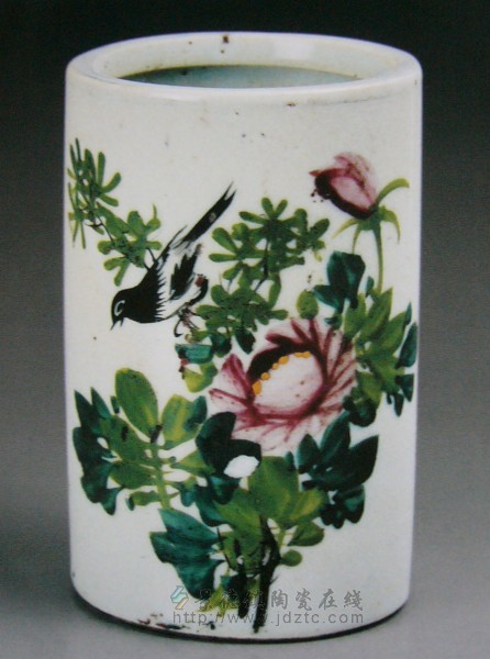 | 民国 彩绘花鸟笔筒 祥记磁号 红款 | |||||