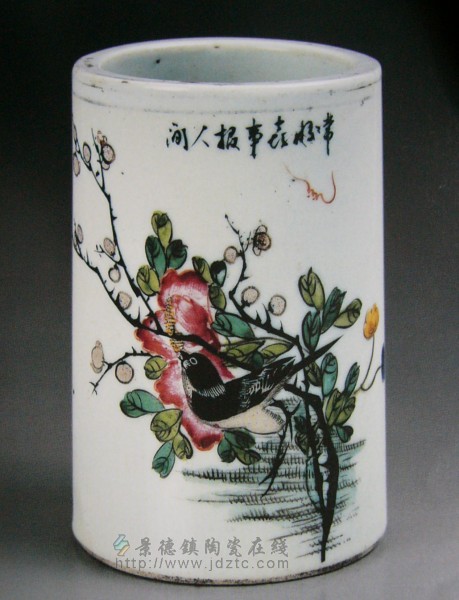 | 民国 彩绘花鸟笔筒 | |||||