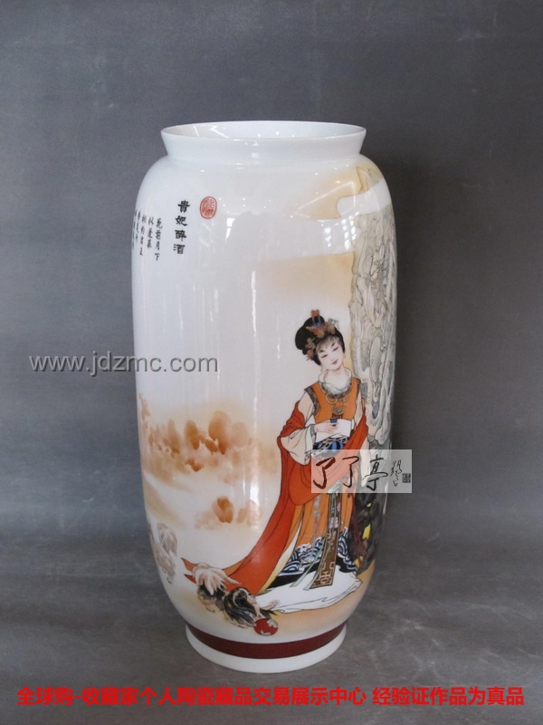 创作艺术家:沈浮 景德镇市工艺美术大师 作品的名称: 新彩《贵妃醉酒》 作品的大小:200件 开口17.5cm 高50cm 宽23.5cm;配备的鉴定资料:作品证书,作者和作品合影; 是否有次瑕疵:无瑕疵 作品所在地:景德镇