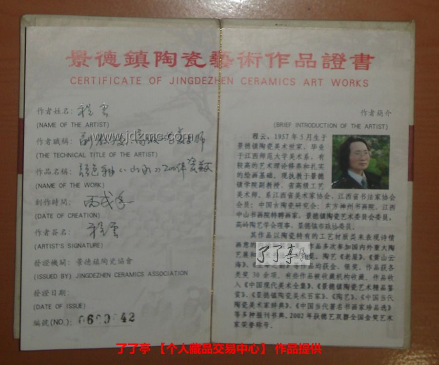 委托价格:1.2万元 该报价为委托方提供,【个人藏品交易中心】栏目仅为透明标示,这也是收藏者或艺术家进行陶瓷收藏应有的权宜。了了亭不参与定价也不代表了了亭任何观点。因为价格是一个非常敏感的因素,所以,本栏目所收取的任何佣金费用,李申盛都将完全捐献给公益慈善部门,捐赠人收据抬头为艺术家及相关收藏者。由此证明了了亭绝对中立的第三方立场。同时也希望,通过点燃这盏公益的明灯,唤起瓷业的慈善星星之火。