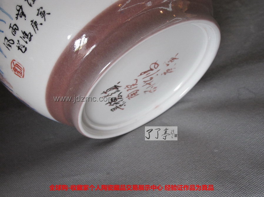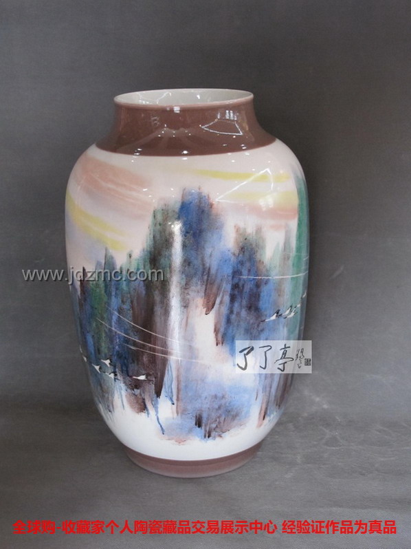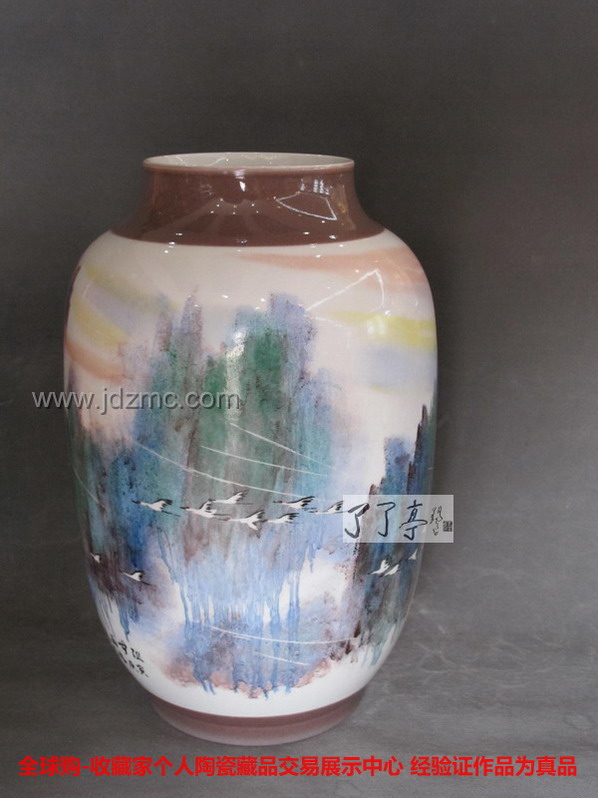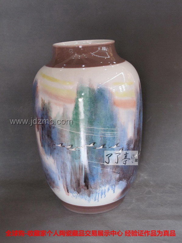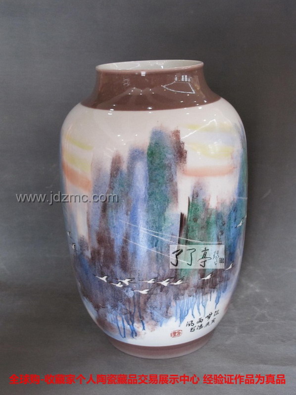 创作艺术家:刘超鸿 景德镇陶瓷学院教授 作品的名称: 《风雨无阻》瓷瓶 作品的大小:200件 开口15cm 高度:42cm 新彩 配备的鉴定资料:作品证书 是否有残次瑕疵:无瑕疵 作品所在地:景德镇