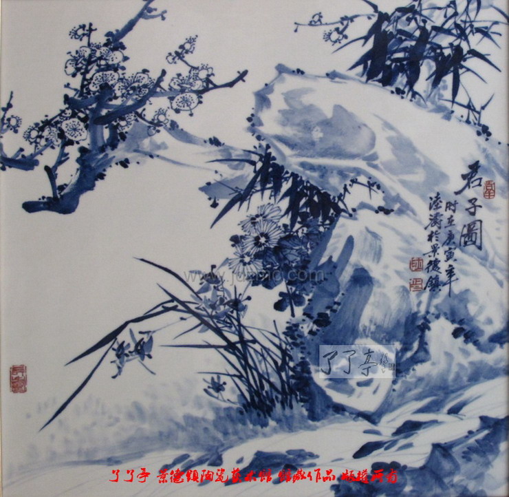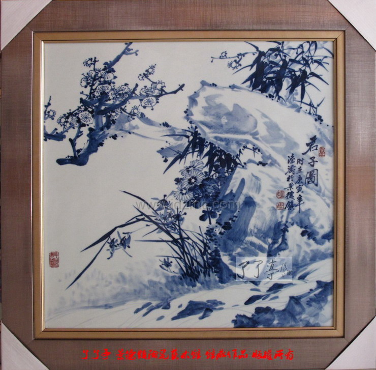 | 《雅集》-梅兰竹菊 50*50厘米 80x30cm春夏秋冬花.斗彩 君子雅集-梅兰竹菊 青花《荷塘幽趣》作者:陆涛 青花“神龙得水”作者:陆涛 |