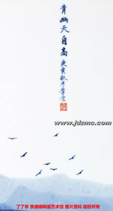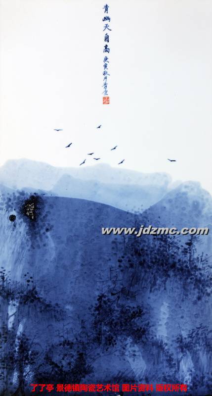 代青全《青幽天自高》青花瓷板