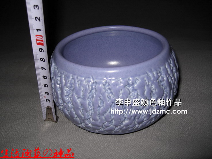 这是一件细开片的紫色钵体,淡淡的紫色,给人一种清雅的味道,而其中细小的纹路给予了钵体的色彩丰富的变化。