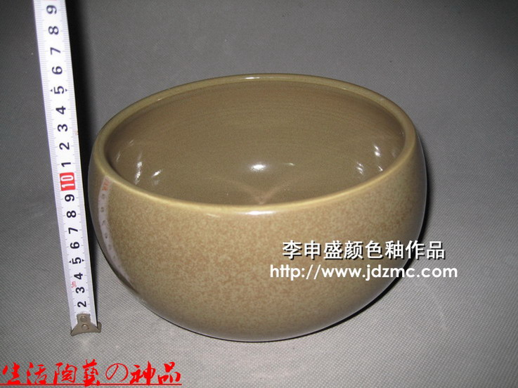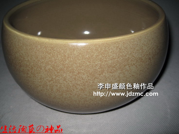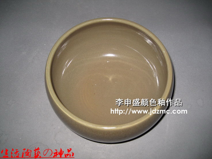 这个颜色釉是为了模拟草地的感觉,黄色是土地,绿色是草皮,小草成星点状、片状分布在钵体之上。
