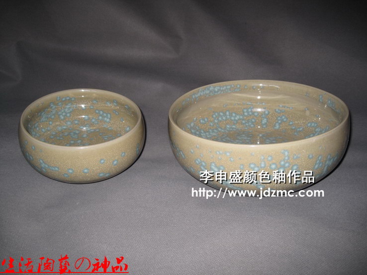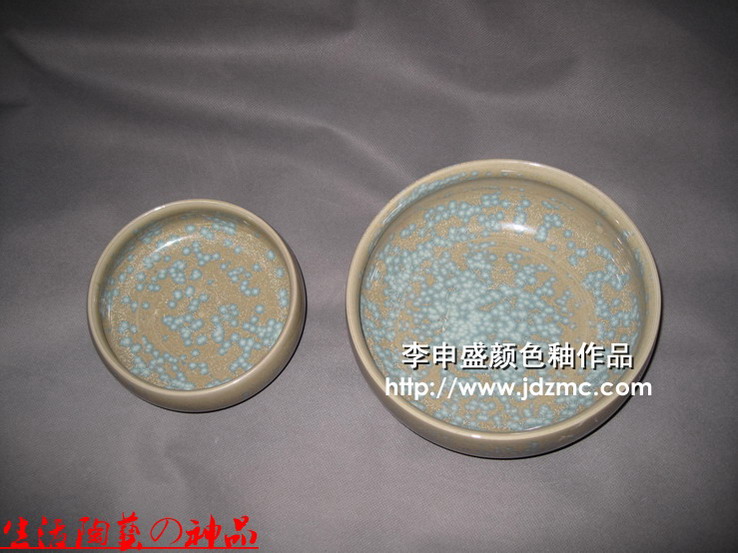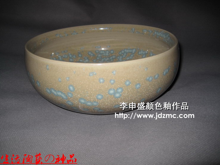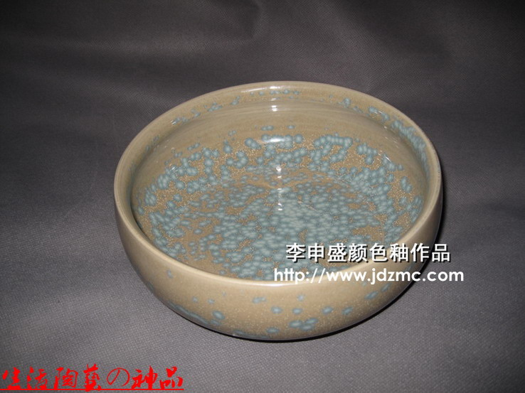 但是在大家的普遍看好声中,我还是选用这个釉来烧制,效果吗,还是很不错的,只是智者见智了。现在做的钵瑕疵很少了,一般都不会是我的工艺问题引起的,往往都是烧窑过程中的不可以 预知的因素。可惜的是,因为网络和生意上事情越来越多,越来越忙了,能够腾来做钵的时间越来越少了。上一次接到一个东北的电话,说要一批,换成别人听的一定很高兴,我是害怕。朋友们要自己的东西是一种赏识,不应该让他们扫兴。可是要做一批的话,那确实要我的命了,折腾一早上,只能做几个出来,主要是慢慢的修整,免得出些小毛病。如果是做一批的话,我两个星期都干不了什么了。家里面 还有一大堆事情,特别是网络还要找各种新闻来更新,不务正业,要给关注了了亭的藏友们骂了。这一段时间正在试验的金铜釉和一小批颜色釉的将军罐,搞得我是抓耳挠腮的,刚刚去了一趟上海,星期六回到景德镇连窑坊都不想去了,在家窝在被窝里面看动画片。现在看到窑自己都感觉害怕,像巫师一样,不知道什么时候给你个好,不知道什么时候给你个歹。