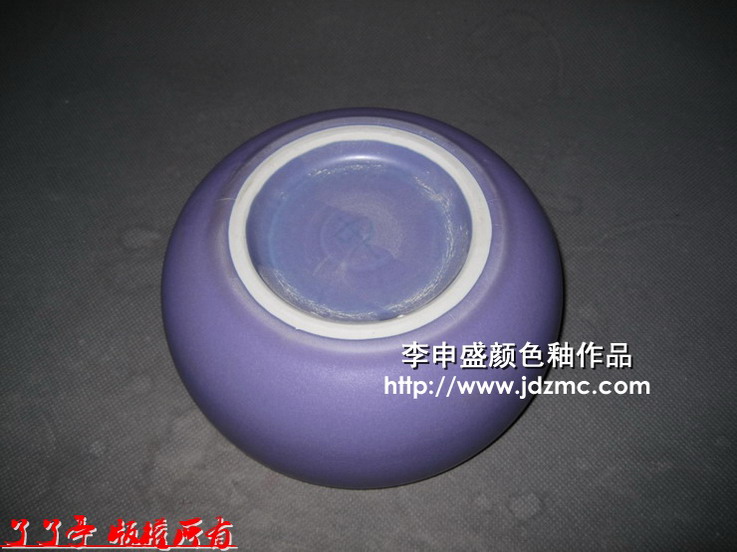 这是第一窑的作品,无光紫,这种紫色比较儒雅,有味道和深度,只是釉层过厚会有开裂现象,需要改进一下釉的配方。
