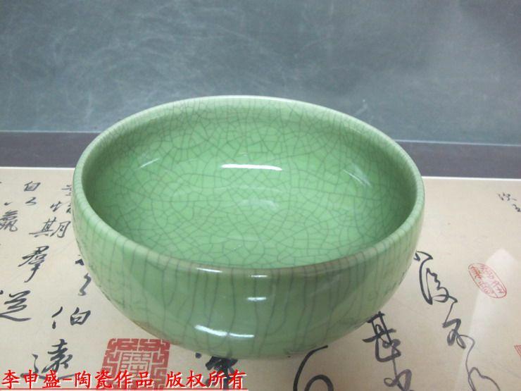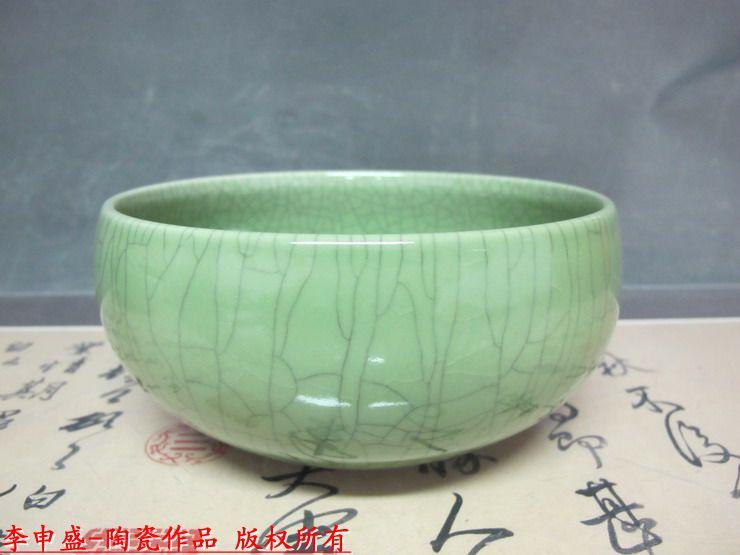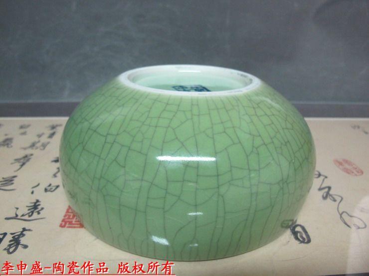 颜色釉精品“绿釉开片洗”手钵 李申盛制 高级陶瓷美术师