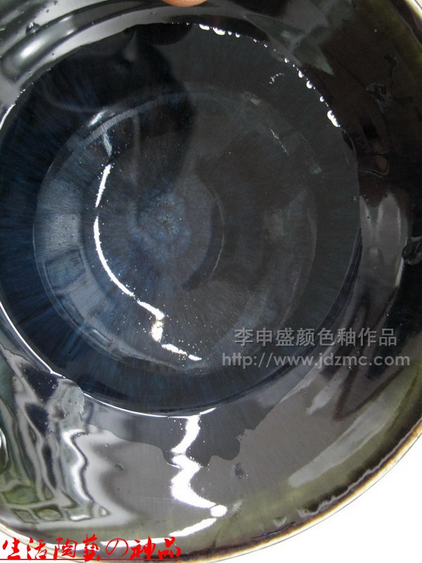 这是一件带光球效果的斗笠碗系,在碗的底部如果加入水,会产生一个强烈的光球,触手可及。而在没有水的时候,效果会有,但是不是那么明显。这个釉体,我折腾了很久,只能用斗笠碗才能产生如此神奇的效果。