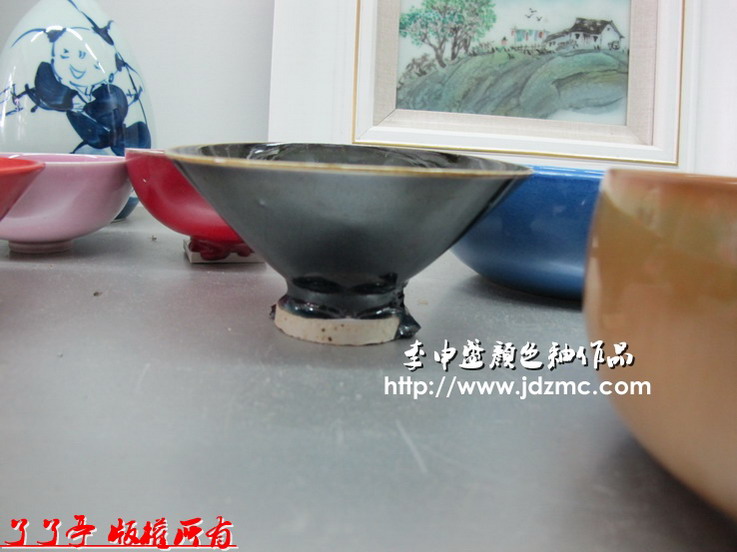 在斗笠碗上如果施一种独特的釉,而且掌握一定的施釉的手法,就有可能在斗笠碗中央形成一个球状的光学效应。