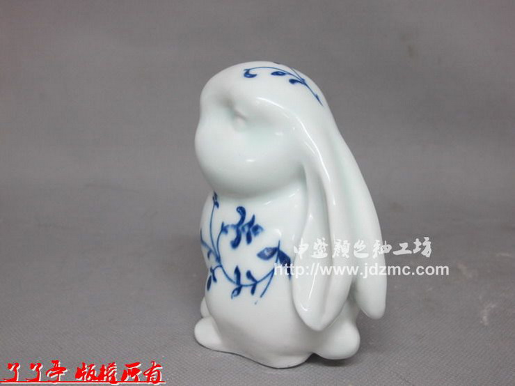 兔年生肖雕塑瓷青花装饰“点儿”