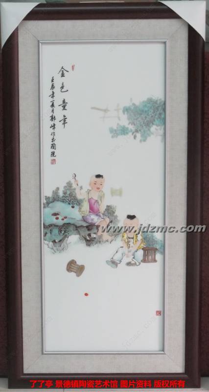 华艺拍卖公司在景德镇举行他们首期拍卖会,唐玲和郭峰各选了一件送拍,从500多件送选的作品中选了170件上拍,他们俩的作品双双入选。这对他们是很大的鼓励。7月6日上午,他们送了二个新近创作的瓷板来,我问他们,明天你们的作品昨要拍卖了,紧张吗?他们很坦然:“不紧张,我们没有负担。拍出去了高兴,迈出了一步。拍不出去,再接再励,总会成功。”我
