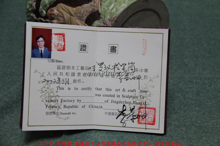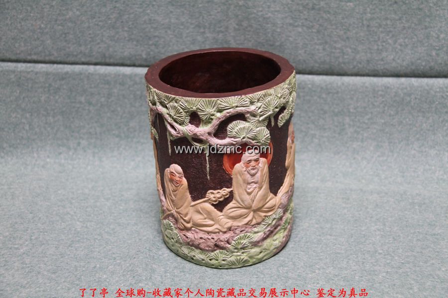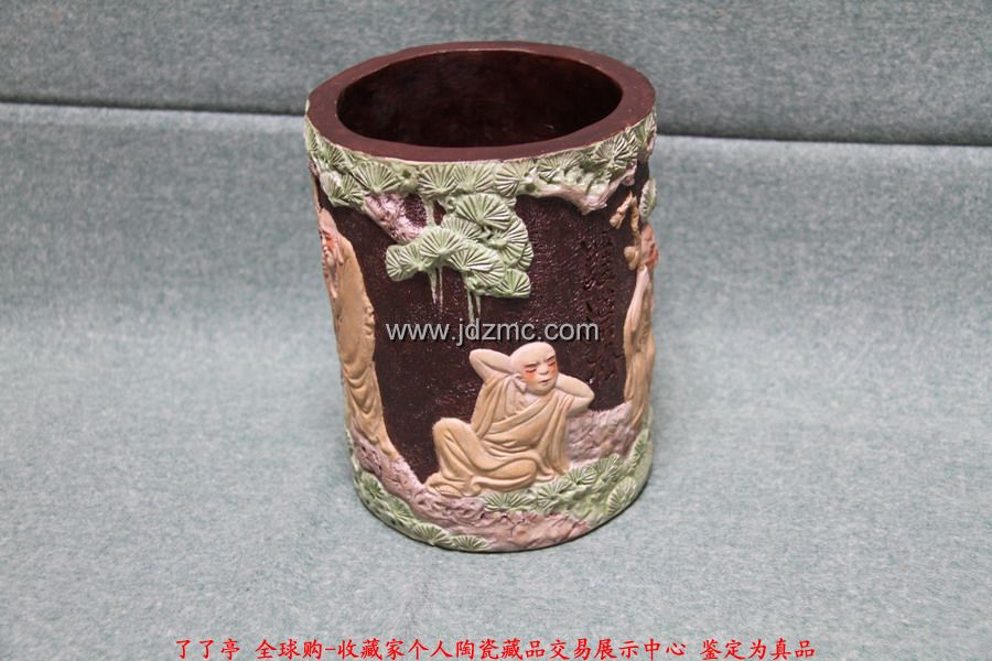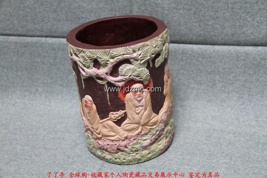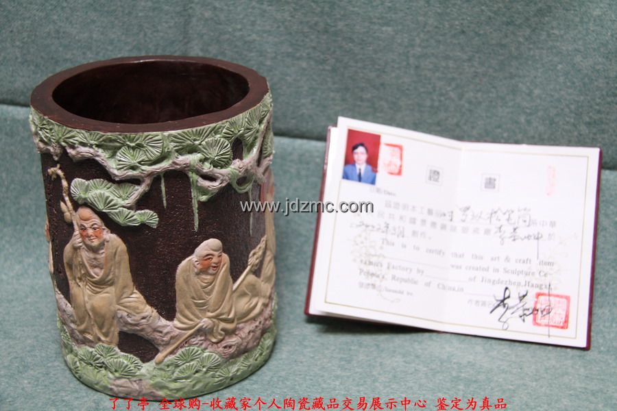 创作艺术家:李恭坤 江西省工艺美术大师 作品的名称:原作 镂雕 人物笔筒10寸《罗汉松笔筒》笔筒 作品的大小:高19公分\口径15公分 配备的鉴定资料:作品证书 作者和作品合影 是否有残次瑕疵:无瑕疵 作品所在地:即将送至景德镇 了了亭