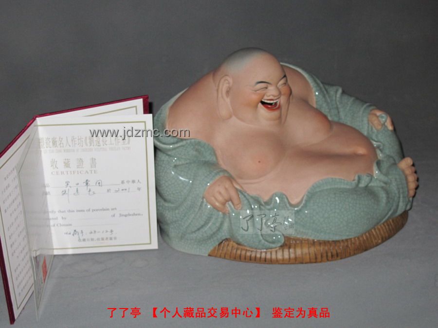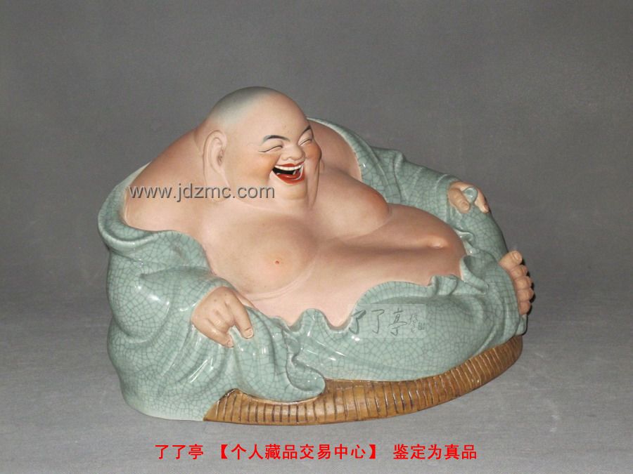 创作艺术家:刘远长 中国工艺美术大师 作品的名称:《笑口常开》陶瓷雕塑 制作时间:2001年 作品限量:28号,本作品为12号 作品的大小:高度:25cm 宽度:40cm 配备的鉴定资料:作品证书 作者合影,是否有残次瑕疵:无瑕疵 作品所在地:已送达 景德镇 了了亭
