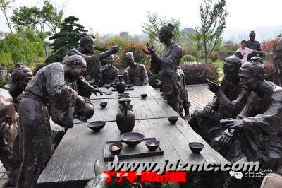 武夷山茶博园斗茶群雕其实,宋人斗茶之风的兴起,与宋代的贡茶制度密不可分。民间向宫廷贡茶之前,即以斗茶的方式,评定茶叶的品级等次,胜者作为上品进贡。斗茶,分割出来作为一项游戏,当时也只局限于文人雅士之间。元代以后,渐渐推向民间,至晚清复归消歇。古人斗茶的一些技法如今已难觅踪影,但大部分的产茶区,仍能看到古代斗茶的遗风。有的“斗茶”大会上,还会奏起古乐。心随弦动,古乐空灵,茶香嫋嫋。这种“斗茶”与古代已有根本的不同,但却反映出了中国茶文化的精深与历史的源远流长。(注:部分图片来自新浪博客“茶百戏”——茶百戏传承人章志峰)