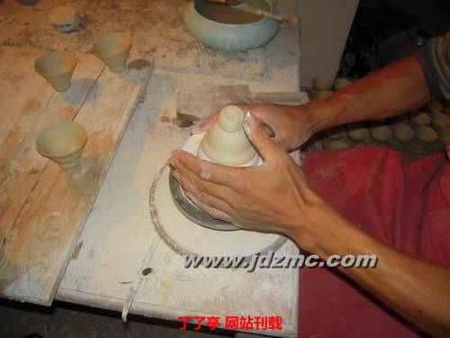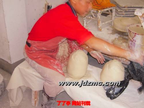 景德镇传统圆器做坯,即是依据最终的器型作出大致相应的坯体,以供后期印坯时使用。