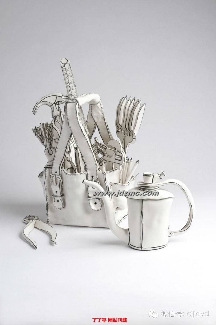 Katharine Morling,来自英国的陶艺艺术家,她的工作就是神圣的。她的作品看起来非常简单,初看以为是用柔软的卡纸拼接起来的小物,但事实上它们又是坚硬的陶瓷,只是拥有其他瓶瓶罐罐绝对没有的千姿百态和梦幻感。在无生命的物体表面上,她给每一块瓷泥、每一根线条赋予情感和故事,带着一丝的离奇、一丝的梦幻、一丝的暗黑,创作着自己的故事。