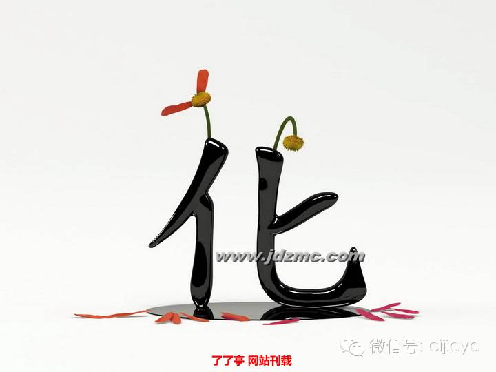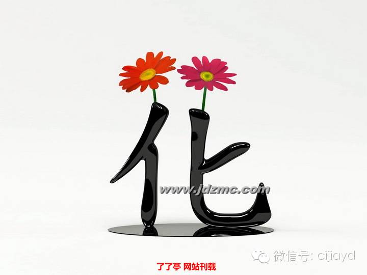 花瓶的设计取自汉字“化”,灵感来源于清朝龚自珍的著名诗句“落红不是无情物,化作春泥更护花”。鲜花与“化”字花插组合成完整的“花”字,待到鲜花枯萎凋零,又变回了“化”字,四季循环,周而复始。完美地诠释了龚自珍的诗意。