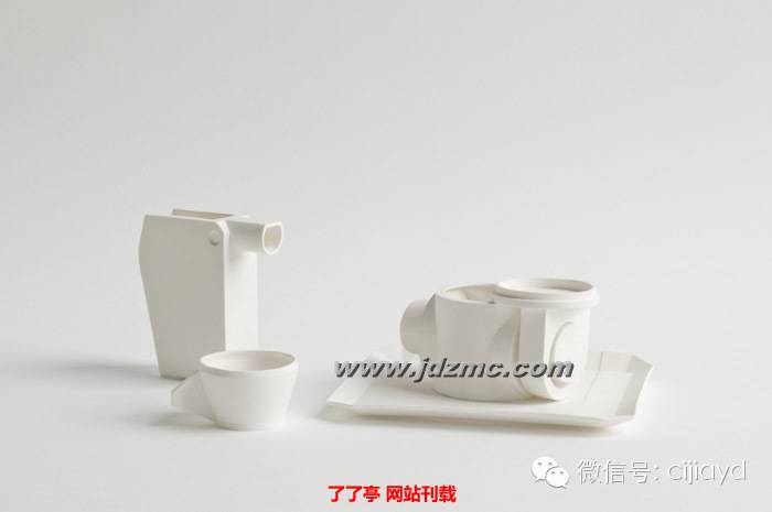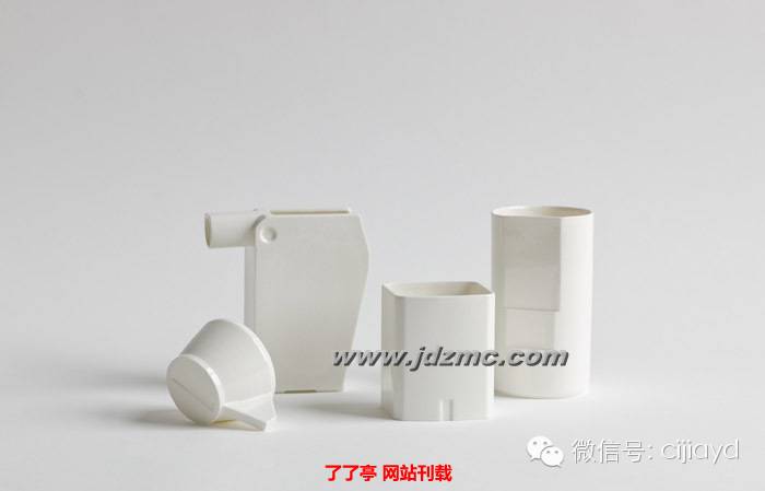 大部分瓷器是圆润的,这是因为脱模更方便,烧制时引起的变形也是最小的。这个项目运用电脑技术辅助生产,复杂和尖锐部分的造型使用3D打印技术,与现代传统手工品形成对抗局面。