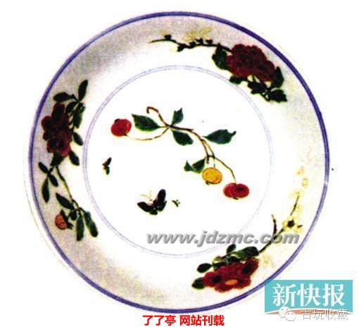 粉彩一开始比较简陋,比如这件康熙时期的粉彩花蝶,纹盘,中间只画了花果和两只蝴蝶、三朵栀子花,但这简单的粉彩官窑正预示了后来粉彩的辉煌。而这件粉彩花蝶纹水丞,寥寥几笔,也预示了后来粉彩的丰富。青花瓷器诞生以后,700年来没有对手,而粉彩出现以后,打破了青花一枝独秀的地位,形成了青花和粉彩各占半壁江山的局面。