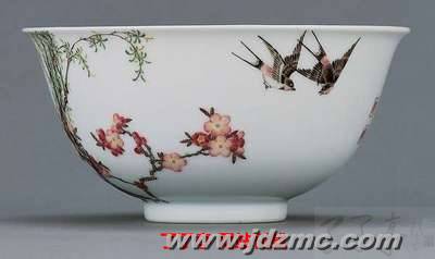 2006年11月,著名收藏家张宗宪先生收藏的清乾隆御制珐琅彩杏林春燕图碗,在香港由佳士德拍卖公司拍卖,约以1.51亿港元成交。此碗珐琅彩绘杏林 春燕图,弱柳扶风,杏花盛开,双燕飞翔其间,一侧行楷御题诗:“玉剪穿花过,霓裳带月归”。造型秀美,白釉温润,底为双方框“乾隆年制”蓝料款。工艺精 湛,为乾隆珐琅彩杰作。1985年5月此碗曾在香港苏富比上拍,成交价为110万港币,短短二十年的时间,价格就翻了130多倍。