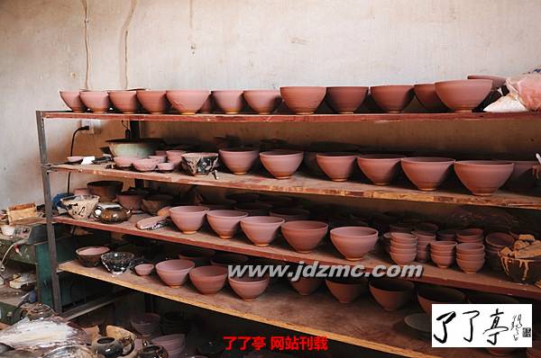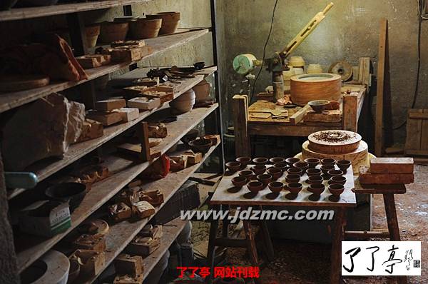 我们照例从手艺人那里买了一些样品带走,告别吴师傅,去往水吉镇上,寻访那里的建盏手艺人。水吉镇上目前有三个建盏作坊,熊忠贵师傅的作坊就在车站对面,很好找,他的制作作坊在自己住宅的最后一层,我们请求参观作坊,他爽快地答应了。
