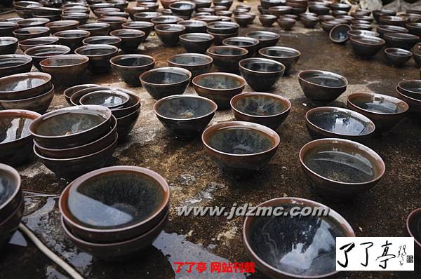 熊师傅烧制出来的银毫盏据说销量不错,和传统的银毫盏不同,釉面浮着一层银光,比较生硬,缺少传统银毫盏釉面的层次感和变化。后来请教了一些人,他们说烧制过程可能使用了化学釉,分两次烧成,而真正的银毫盏较为难得,因烧制温度较高导致瓷胎变形率大,成品可遇不可求。