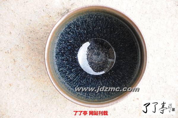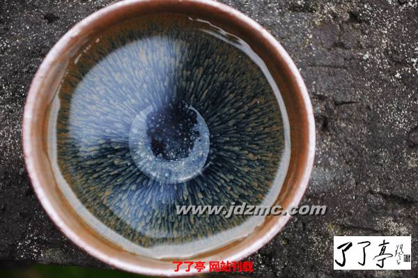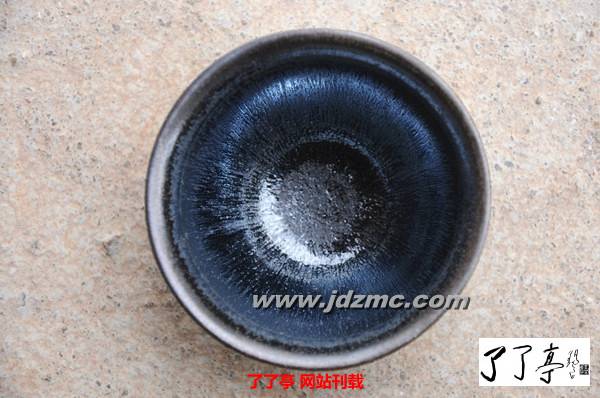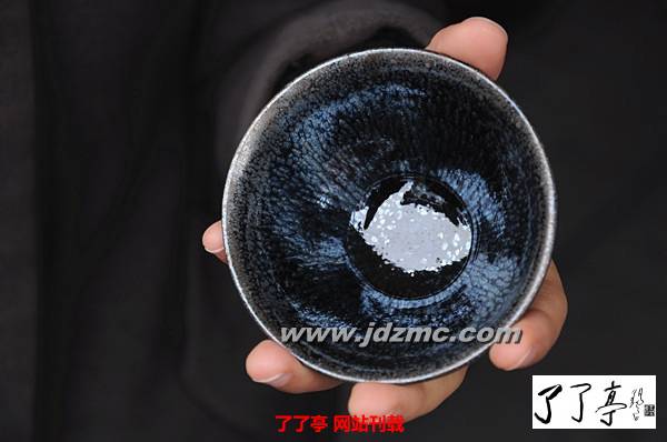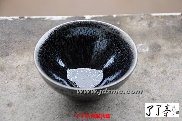 除了前面提到的乌金釉盏、兔毫盏和油滴盏外,常见的建盏还有鹧鸪斑盏以及极其难得的曜变斑盏。