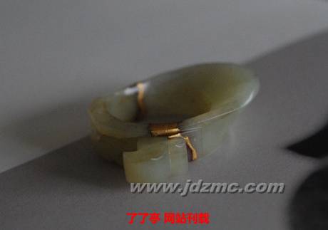 战国至西汉的韘形佩,和田玉质,可惜断开了.物主之前用胶水粘好了,但是那样看着总觉得是一个残件标本,后来重新把胶水去除,用生漆黏合好,从纯粹展示和观赏的角度来说,这样黏合的强度足够了.古代有金镶玉的工艺,这次借着修复也达到了"金镶玉"的效果,而且看着更像是"长在一起"似的。