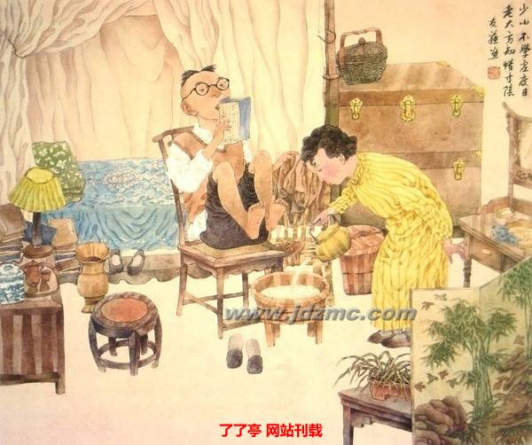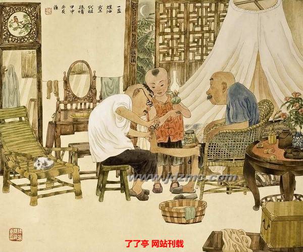 上面17幅市井俗画是写实油画家苏小豪作品。这些生活场面,五十岁以上的朋友是非常熟悉的,许多还是我们亲自经历的。年届天命之后,再看看这些俗画,当是如何感想?只是现今儿孙或已不再感冒这些。白马过隙,时代迥异,无需叹息!