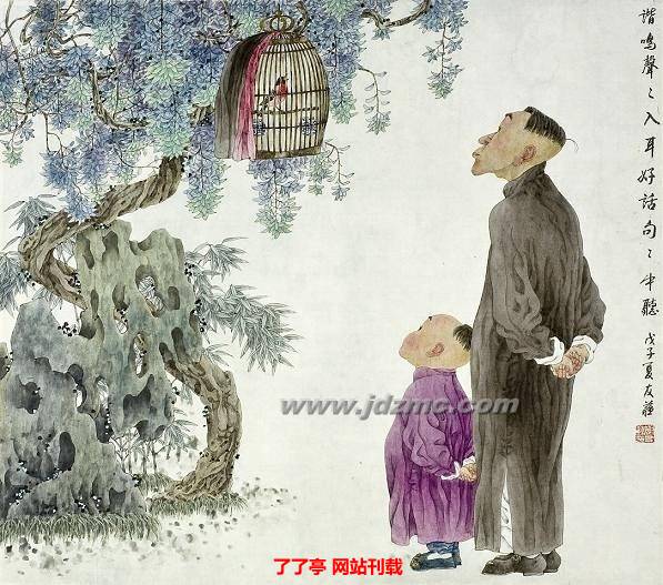 背手听鸟铃叮音,怎知笼中哀怨鸣。