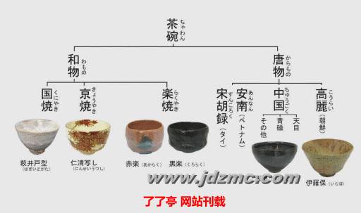 日本和物茶碗是按照窑口来分类的,主要有以下几种: