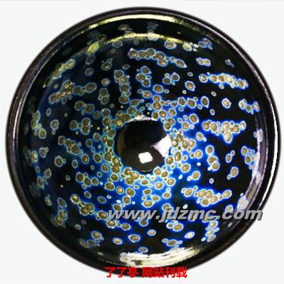 这是日本东京静嘉堂收藏的曜变天目建盏,被称为世界三大曜变天目茶碗之一。(前些日子,静嘉堂举办天目茶碗展,有机会一睹这南宋时代建盏的风采)