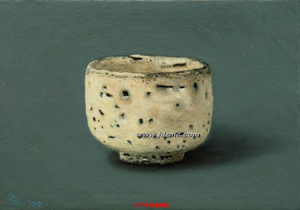 鼠志野茶碗:志野茶碗是在志野这个地方烧造的茶碗,代表了茶人小堀远州的美学理解。表面大量的气泡形成的洞和超厚的釉是其特点。其是对乐茶碗的进一步发挥。