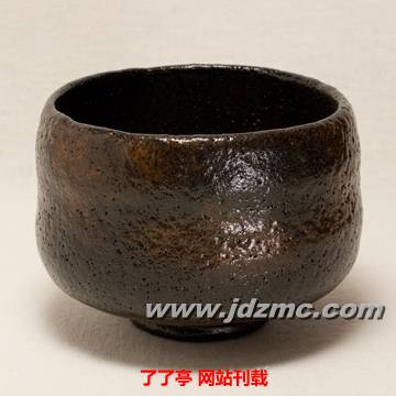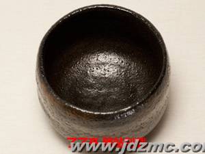 黑乐茶碗:黑色茶碗是借鉴了建州黑釉的配方制造而成的没有窑变的茶碗。早期乐茶碗全部都是不规则的,这是故意为之的,因为日本的茶道追求浑然天成的不对称美,虽然看上去很破烂,但是其实现制作陶胎,烧成陶器,定型,然后再上釉,进行二次烧造的精品。
