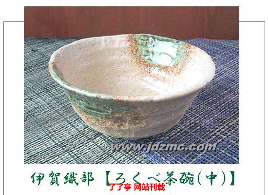 织部茶碗:利休七哲(利休的7个学生)中的古田织部命名的茶具风格,美浓烧的杰作。不仅限于碗,还有茶入,茶壶,水质,凡是瓷器,都有这种风格的器物。绿色或者黑色,伴随褐色的古朴图案,表现出彻底的恬静和自然是织部最主要的表现。