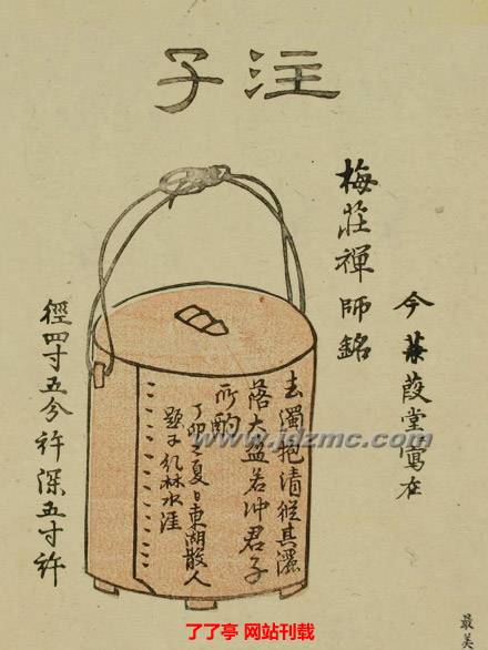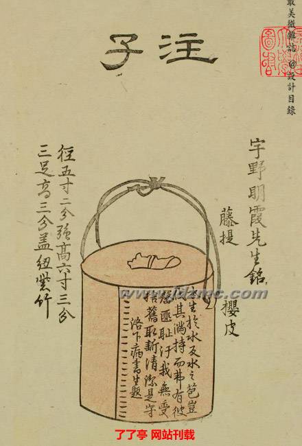 ○漉水囊:用以過濾煮茶之水,有銅制、木制、竹制。