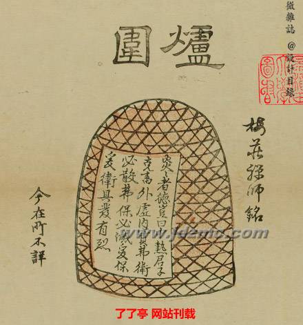 ○風爐:為生火煮茶之用,以中國道家五行思想與儒家為國勵誌精神而設計,以鍛鐵鑄之,或燒制泥爐代用。其具體設計思想見後章茶道部分。