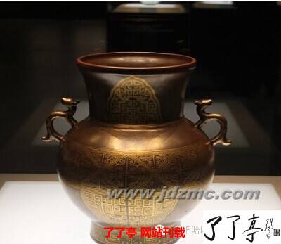 仿古铜釉为其中之一,它能十分巧妙的反映出古铜器的色泽、锈斑,而且有的还仿制战国时期错