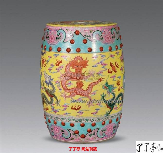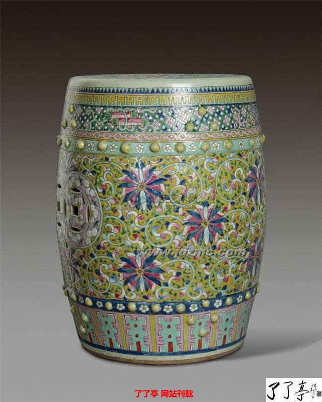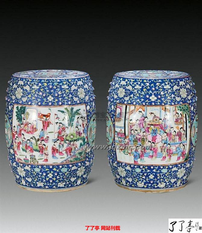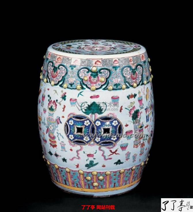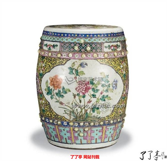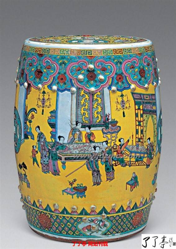 明清两代的绣墩,不仅在室内使用,也常在庭园、室外陈设。在制作材质上有木、竹、藤、雕漆、瓷等。
