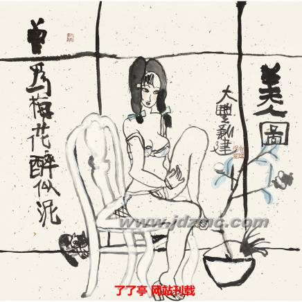 所谓“新文人画”究竟新在哪里?遍检诸家,屡见文化之贫乏、笔墨之粗糙、精神之卑琐、境界之逼仄。其所谓人物画,多前人之所不屑画,以市井流俗饮食男女乃至动物本能入画而已;其所津津乐道者,不过女人丰满香艳之体、日常之声色犬马,下笔摇摇,丑怪纵横,浊秽满纸,斯文扫地尽矣,何与乎文人之事?其所谓高士图,多拾人牙慧,故作深沉,以无为有,以少为多而藏其技巧之笨拙不足而已;其所画山水,多取古人一技,夸而张之,乖戾之气满纸,而曰吾之所创,足以超越古人,求其气韵之高雅、题跋之精妙则归于无有。而为其鼓吹者,不遗余力,举无穷美辞好语以加之,其学术之底线何在,当真是难以寻觅。