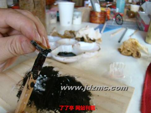 2、调制胶合漆,两种配方:黑漆加蛋白、或黑漆加糯米粉