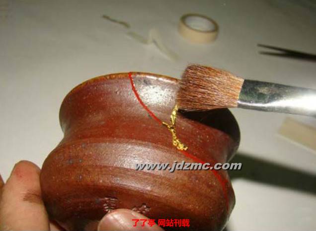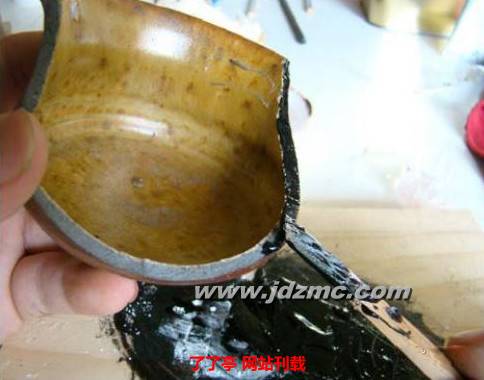 1、用生漆固胎,涂在陶瓷断面、入窑炉中烤干