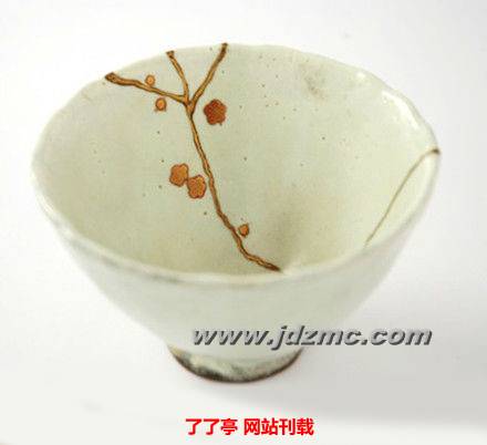 将破碎的器皿,粘好后在接缝处用金粉进行绘画,这是一种因地制宜的自然修复技巧,不但可以修复器物,也可能诞生一件独特的全新作品,让那些美丽的器物复活。