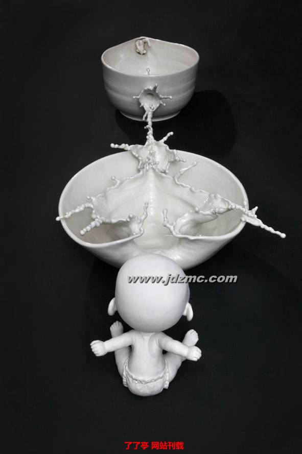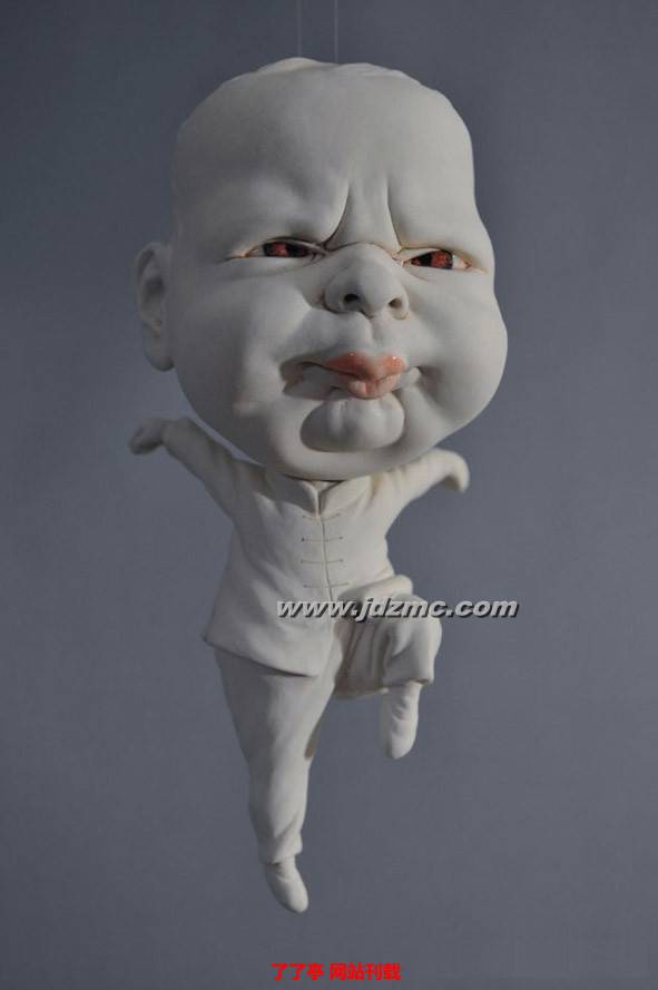 他的作品多以细致写实的雕塑手法,表现超现实的想像,亦喜以人类和物体融入创作题材。他刻画水花瞬间停格的画面,让人感受柔软的水花在瞬间爆发的力道。而表现婴孩纯真且丰富的表情与体态,看似诙谐逗趣的卡漫式造形,细细品味内容,却能体会背后对于人类关怀、反省及反讽的寓意,充满创意及想像。