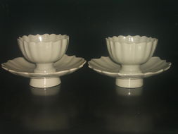 同安窑:在今福建同安县,故名。创烧与唐代,宋元时期鼎盛,以烧青瓷为主,兼烧青白瓷。同安青瓷,日本人称为"珠光青瓷"。其特征和鉴定要领是: (1)胎体较厚重,胎色有灰黄、灰白、粉黄多种。 (2)釉色青黄或灰黄,尤其宋代,釉色偏黄。 (3)产品以盘、碗为主,还有瓶、罐、炉等。唐代青瓷以厚胎平底碗为主,无纹饰。宋代青瓷在盘、碗等器的里部都有刻花蓖划纹饰,器外刻复线装饰,碗心多有凹入的圆窝,有的在圆窝内划花卉一朵。炉分两式,其一敞口,下部浮雕莲瓣纹,下承以撇足座;其二直筒形,圈足,炉身刻划莲瓣纹。瓶口多下折,瓶身划复线纹。元代青瓷盘心印阴纹双鱼。 (4)青白瓷纹饰与青瓷基本相同,碗心多有一个小圆窝,瓶罐的外壁多刻划由细线 条复线交叉的斜十字形纹。