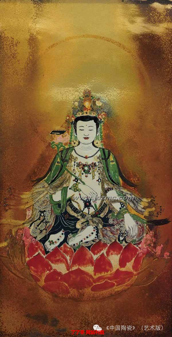 这种演化包括艺术表现形式、题材以及心境,由粉彩到颜色釉,仕女到佛教题材,兰子的努力与思考让她不断出现超越自己的欲望,而欲望的体征则是感性的认知,喜欢或是不喜欢,有没有眼前一亮。此后的,是可长可短的从量到质的演化过程,有人瞬间顿悟,也有人终难觉醒。而促使这种循序渐进的力量源泉来自心境。兰子说,人生如水,人如杯,找到适合自己的那个杯,才轻松满足,能把爱好当成职业是一件幸福的事,谁都愿意为幸福付出。比如她选择佛教题材,很大一个原因则是家人礼佛,心诚求安。