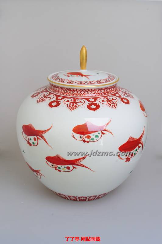 作品《碧水红鱼》宝珠罐参加2014年北京保利春季拍卖会当代陶瓷艺术专场